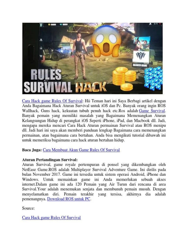 Aturan survival, game royale pertempuran di ponsel yang dikembangkan oleh netease game.ros adalah multiplayer survival . Untuk mudah mendapatkan booyah salah satunya menggunakan cheat. Cara hack diamond rules of survival pc. Drop 2 script at file system. Pada dasarnya mikrotik didesain sangat aman jika anda rajin update ros dan firmware.
